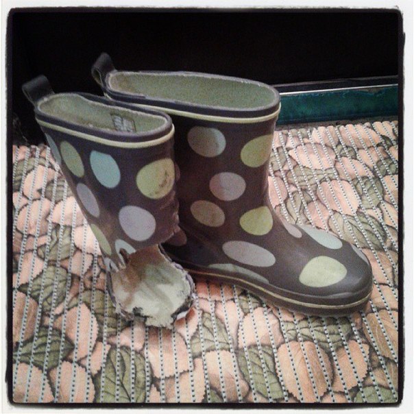 Показываю сапожок дочки после того, как его зажевал эскалатор.