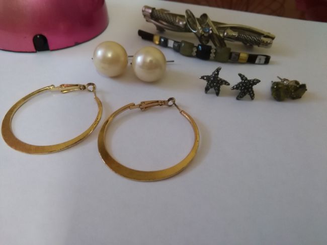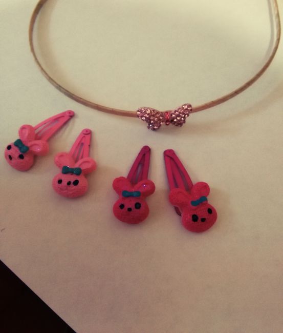 Девочки,подарю разное,только ваша пересылка:-)заколочки и обруч для малышки,две пары гвоздиков,одни серьги с белыми бусинами,серьги-кольца,две заколки,светильничек(у одного зайки ушко отбито:-),шапочка на ог 50-52,рукавички на 1-2годика