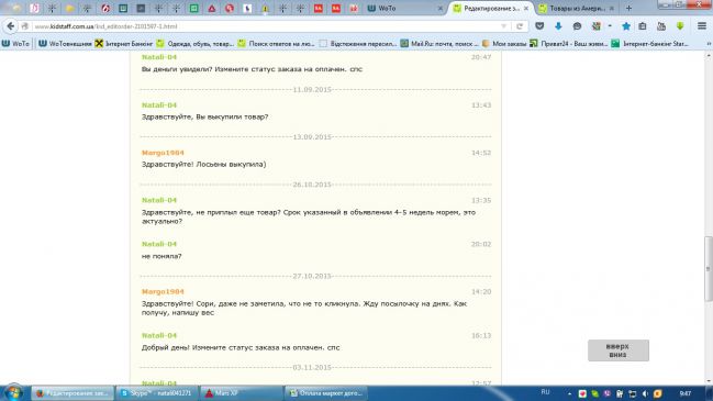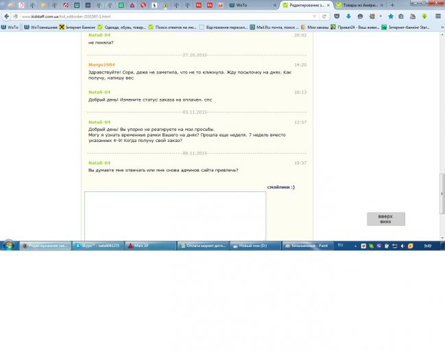 Жалуюсь админу, видимо после вмешательства админа ответ в заказе:Здравствуйте! Сори, даже не заметила, что не то кликнула. Жду посылочку на днях. Как получу, напишу вес.