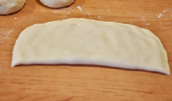 7. Сложите тесто пополам и как можно более тщательно защипите края, чтобы они не разошлись при жарке и не дали начинке вытечь наружу.