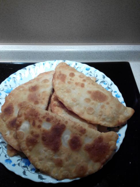 сегодня впервые жарила чебуреки и о спасибо автору что выложил в сет такой хороший и простой рецепт!Чебуреки с мясом.