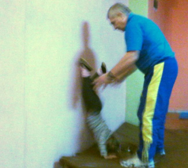 Но есть, есть занятия для детей! Их проводит заслуженный тренер по спортивной гимнастике, с опытом работы более 20 лет в спортивной школе Динамо (теперь уже почившей в бозе).
