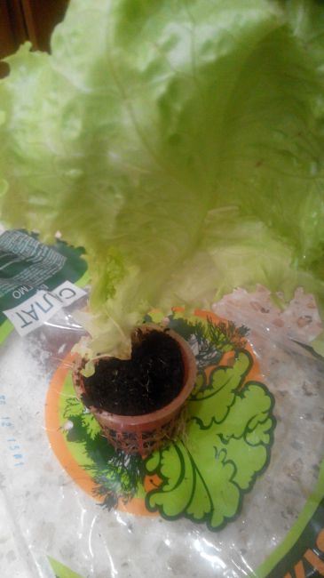 Покупала в конце декабря листья салата.Украшала ими новогдние блюда.Остался салат ,я про него уже забыла.и вот сегодня достала салат из холодильника а он,как только с грядки.