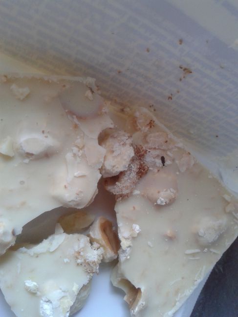 Девочки, возле метро Минская открыли продуктовый магазин Фрешбаза, там продают итальянские, немецкие продукты.Я там частенько покупала продукты.На днях купила шоколадки ритер спорт, быстро развернула и в рот (болтала по телефону) и потом обратила внимание внутрь бумажки и офигела (фото внутри).