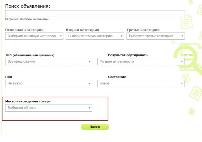 Нет, этот пункт есть, когда создаешь объявление по продаже чего то, а когда ищешь, что то на кидстаффе, нет фильтра по регионам, я, например, не могу укзать Донецкий регион, чтобы поиск шёл в этой области