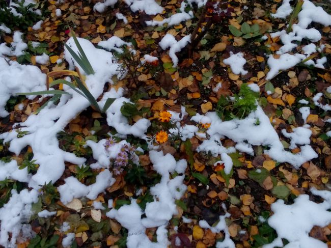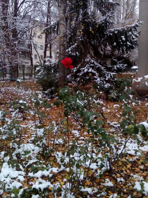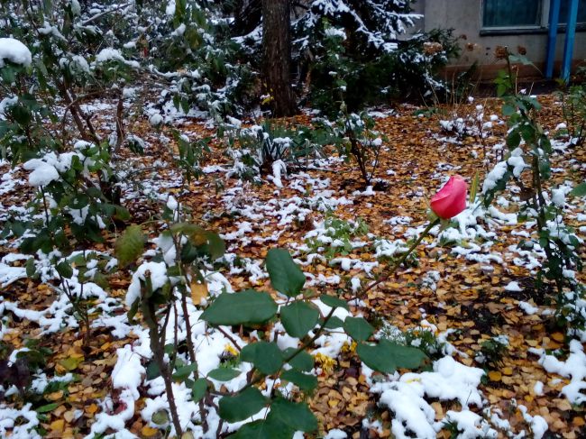 да чего там красивого, розы уже обрезать и укутать нужно было, а так она вымерзнет:(