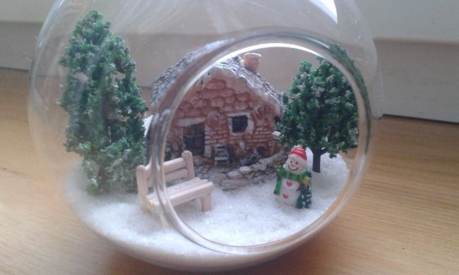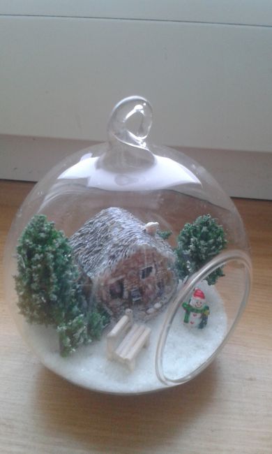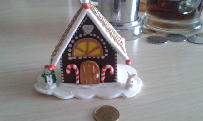 Валялся пакетик дешевого белого легкого теста для лепки. И вот, захотелось вдруг сделать миниатюрку - пряничный домик с зайцем. Цена вопроса - 6 грн. Роспись контурами. Низ еще покрою искуственным снегом, чтобы скрыть неровности от вырезания. Прядумаю подвес (крепеж) и будет елочная игрушка...