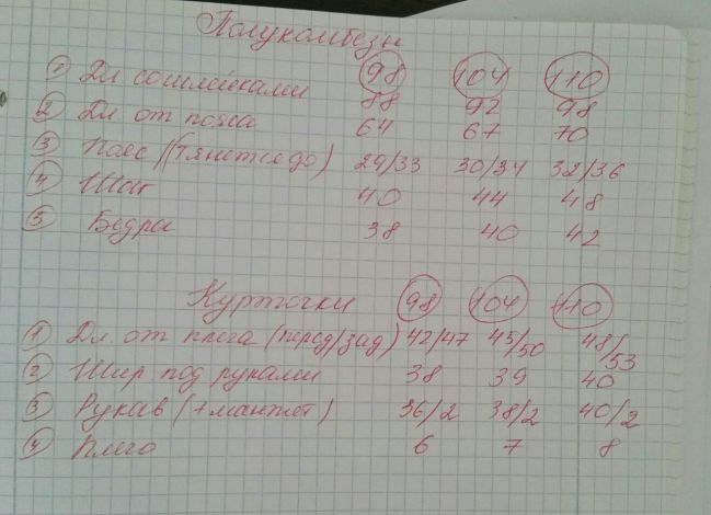 Пока у меня есть замеры сдельных от 86 до 98 и раздельных от 98 до 110 размеров!