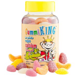 Жевательные конфеты с кальцием и витамином D от Gummi King имеют шесть натуральных фруктовых вкусов (клубника, лимон, апельсин, виноград, вишня и грейпфрут). Они вегетарианские и не содержат желатина, обеспечивая детям кальций и витамин D.