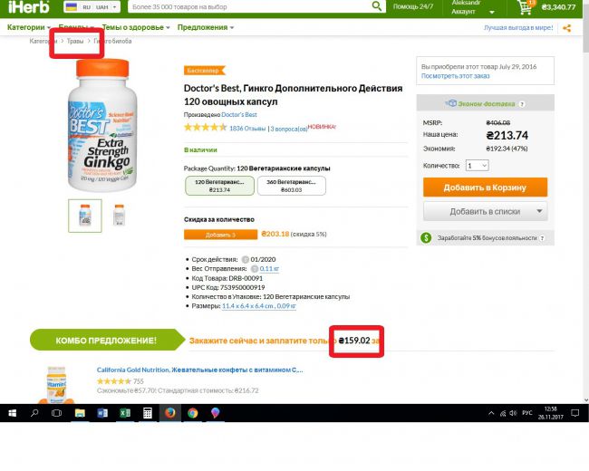 Solgar, Комплекс черники, гинкго для зрения плюс лютеин, 60 капсул в растительной оболочке 489.79