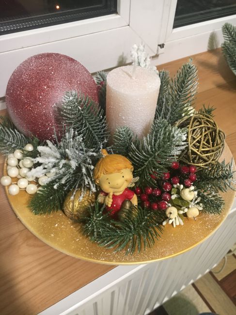 Мой венок. Ещё надо замаскировать проплешины немного. И хотелось бы снегом искусственным задуть, но боюсь что на улице он потечёт весь. Венок будет висеть на входной двери ( частный дом)