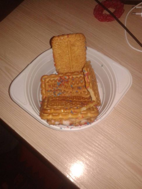 Сегодня у нас в классе состоялся самый низкопробный мастер-класс "пряничный домик". Рекламные фото совершенно не соответствуют реальности(. Оплатив по 130 грн., дети изготавливали пряничные домик из печенья "Буратино"?! Тарелки почему-то отвратительно воняли уксусом.