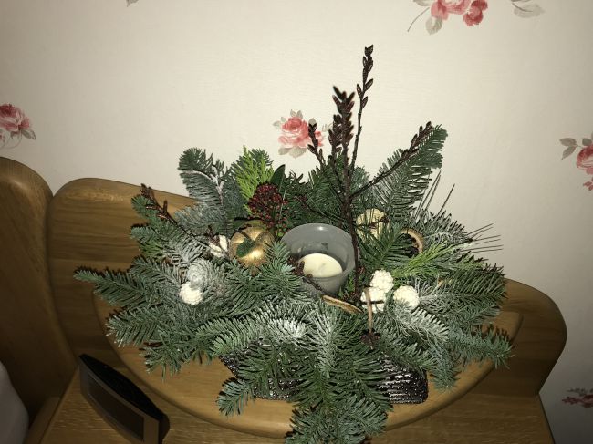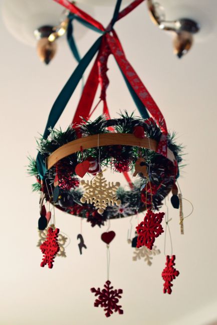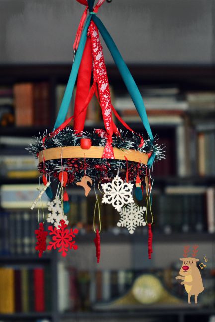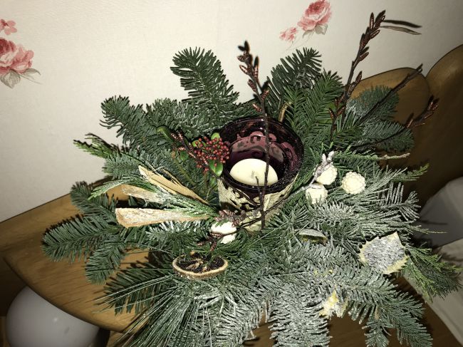 Мы не католики и поэтому свечи я не зажигаю - заимствовала от кумы немки саму идею и круг. Очень красиво выглядит. Кума подвешивает на люстру свой адвенткранц тоже))