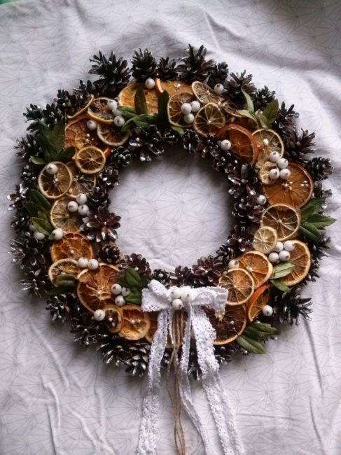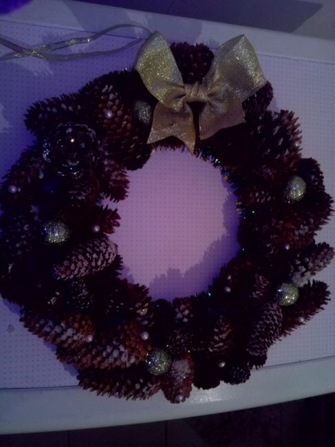 А у меня из шишек венки. Один в школу отнесла, второй в процессе изготовления.