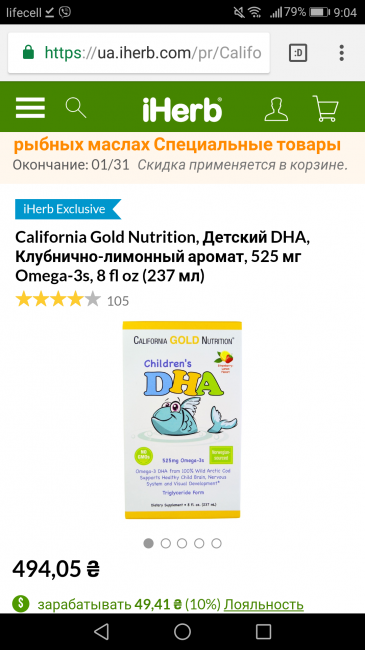 Дополнительные скидки указаны оранжевым вверху страницы как на фото 2 или в корзине, при инд. или самостоятельном заказе есть дополнительные скидки на все товары. В СП стоимость рыбьего жира с фото 2 104 грн. при покупке с товарами из детского раздела, собственно, о нем эта тема)