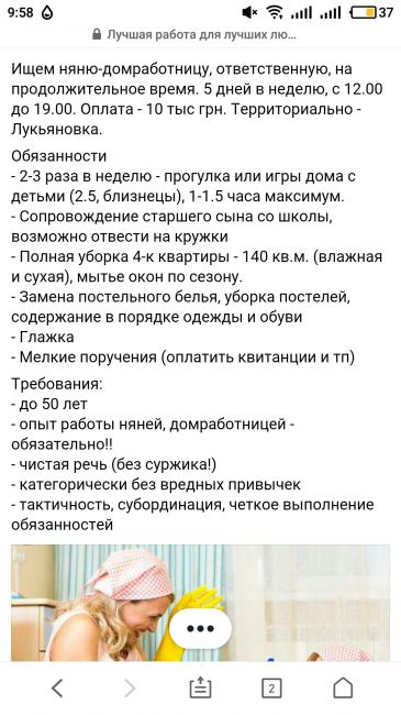 издеваетесь? няня для двух детей еще и домработница за 10 тыс??