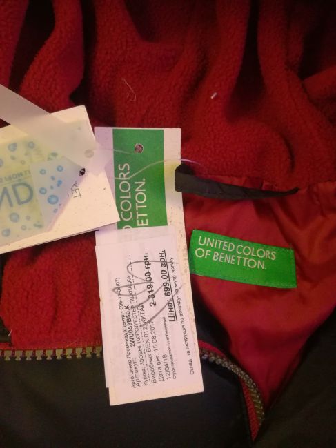 угу, Вы хоть стоимость курток бенеттон знаете? чуть чуть это в 5 раз дороже, б-у столько даже не стоят. Автор, класс, реально большая удача, куртка вообще бомба.