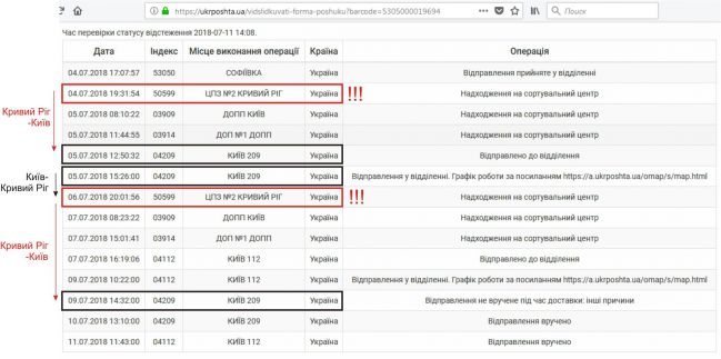 Таємницю блукаючих посилок Укрпошта розкрито! Вона таки здатна дивувати… Тиждень ми чекали посилку від друга з Кривого Рогу. І ніби нічого незвичного, 7 днів для Укрпошти – це норма )) Здивування з’явилося, коли ми переглянули трекінг посилки. Ось де Бермудський трикутник ))) А точніше поштовий волейбол від Укрпошти. Згідно трекінгу, посилка приїхала до Києва 5 липня і… чомусь поїхала назад до Кривого Рогу ))) На так званий сортувальний центр. Таке враження, що працівники УП передавали одне одному привіт з Кривого Рогу в Київ і назад. Як в пасхальному анекдоті про лікарів і яйка ))) В результаті, посилка таки приїхала до нас, але раджу всім, кому важлива терміновість і справжня доставка за добу, не користуйтеся Укрпоштою. З вами можуть зіграти злий жарт…