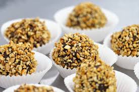 И теплые еще шарики паштета обвалять в смеси из тертого горького (именно черного горького)шоколада и миндальной крошки, я брала хлопья готовые, такие тонкие листочки.