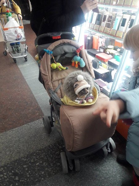 А если серьёзно, я всё детство подобным образом своего Рябчика, собаку, в коляске катала. Счастливы были с ним оба