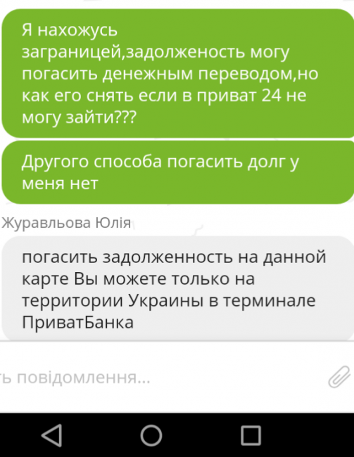 Оператор говорит что нужно погасить долг в терминале на Украине.