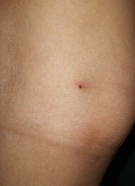Сегодня увидела у дочки под коленом точку. Под лупой разглядели, что это клещ.