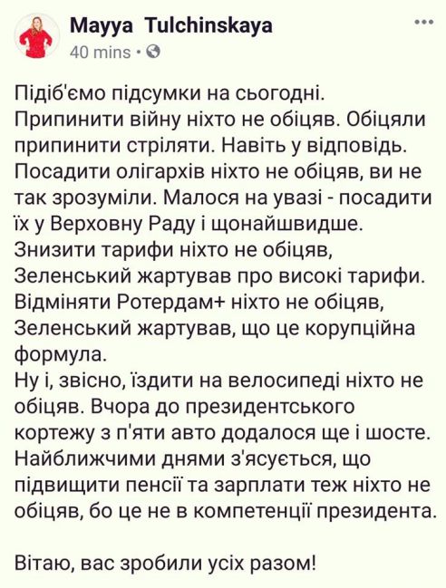 Хоча і без популізму, але питання тарифів, безумовно, у фокусі уваги. Звичайно, я багато із цих пунктів говорив і у живому інтерв’ю, але у заголовки/новини це не потрапило. Хто ще новий у політиці, вчіться краще на моїх помилках. (с)