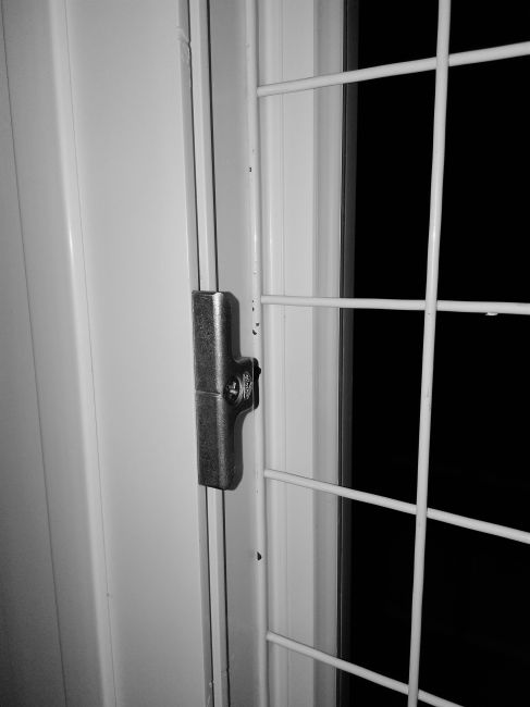 Это на балконе. Просто вставляется внутрь рамы, а выступающие части не дают сетке выпасть. Я могу достать и поставить обратно, приложив усилия, а коты ничего не могут сделать.