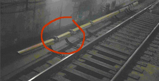 Саме з контактної рейки потяг бере електрику за допомогою струмоприймача. Напруга у цієї рейки 825 В, а силу струму вона дає таку, що багатотонний потяг метро непогано так розганяється. Загалом, наближатися до цієї рейки СМЕРТЕЛЬНО НЕБЕЗПЕЧНО. Смерть наступає моментальна і остаточна. Незважаючи на те що вона закрита кожухом — вставати на рейку категорично заборонено.