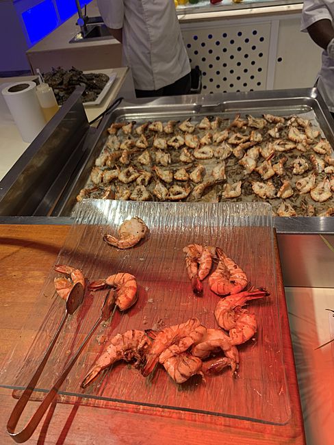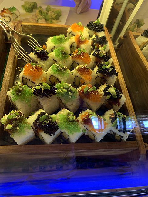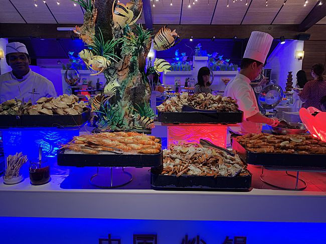 Можно я покажу фото из нашего ресторана? Питание было просто шикарное! Я даже не ожидала что на столько. Пасту делали сами, соусы все к пасте, суши, роллы, тунец, рыба красная слабосоленая каждый день на завтрак, обед и ужин, свежая в больших открытых холодильниках как в магазинах, ты подходишь, выбираешь рыбу и тебе ее сразу готовят так как ты скажешь.