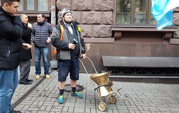 Под офис ГБР привезли ’коррупционный унитаз Порошенко’
