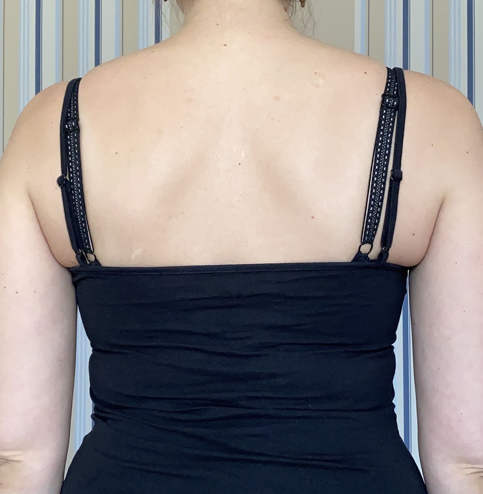 Пояс швидко розтягується і підмімається на спині? Тобто коли носите майки і відкриті сарафани виглядає позаду бюст? В мене таке було, і це бісило, але зараз все ок!