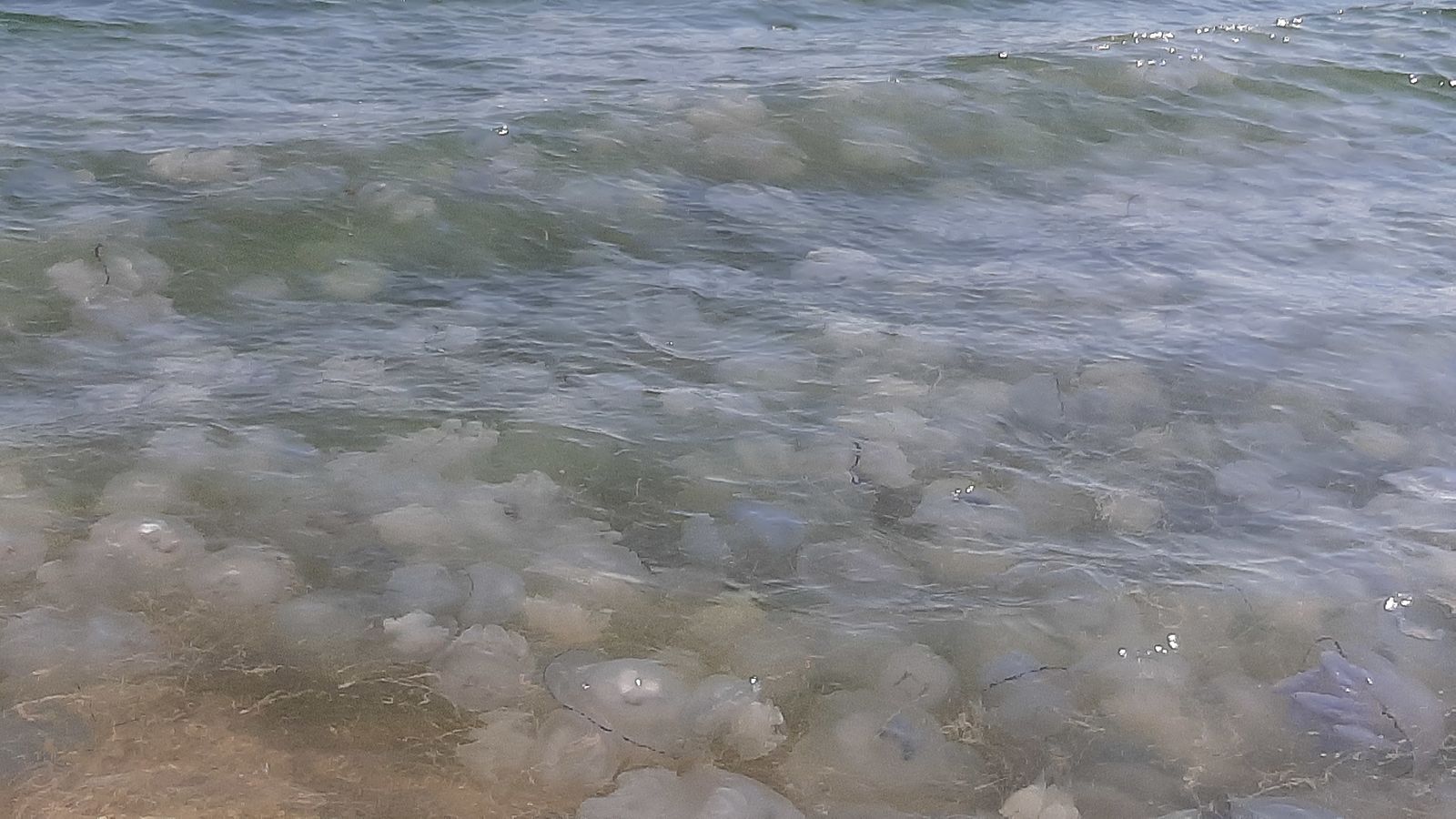 А мне как вам передать фото с кол-вом медуз,если шторм? Дальше их еще больше.Берег периодически чистят, поэтому ’кладбища’ медуз нет. Господи, девочки,вам не угодишь.Люди делятся впечатлениями, может для кого-то нужно,но нет же, находятся эксперты. В море люди не купаются, медузы жалят.Их действительно много.Шторм калашматит их, поэтому не видно . Конечно, по сравнению с другими фото, которые выложили люди, тут не очень много. Но я в конкретном месте же нахожусь,а не по всему Азову. Сколько лет подряд отдыхаю, такое впервые.Кому не актуально,не комментируйте, пожалуйста!!!!