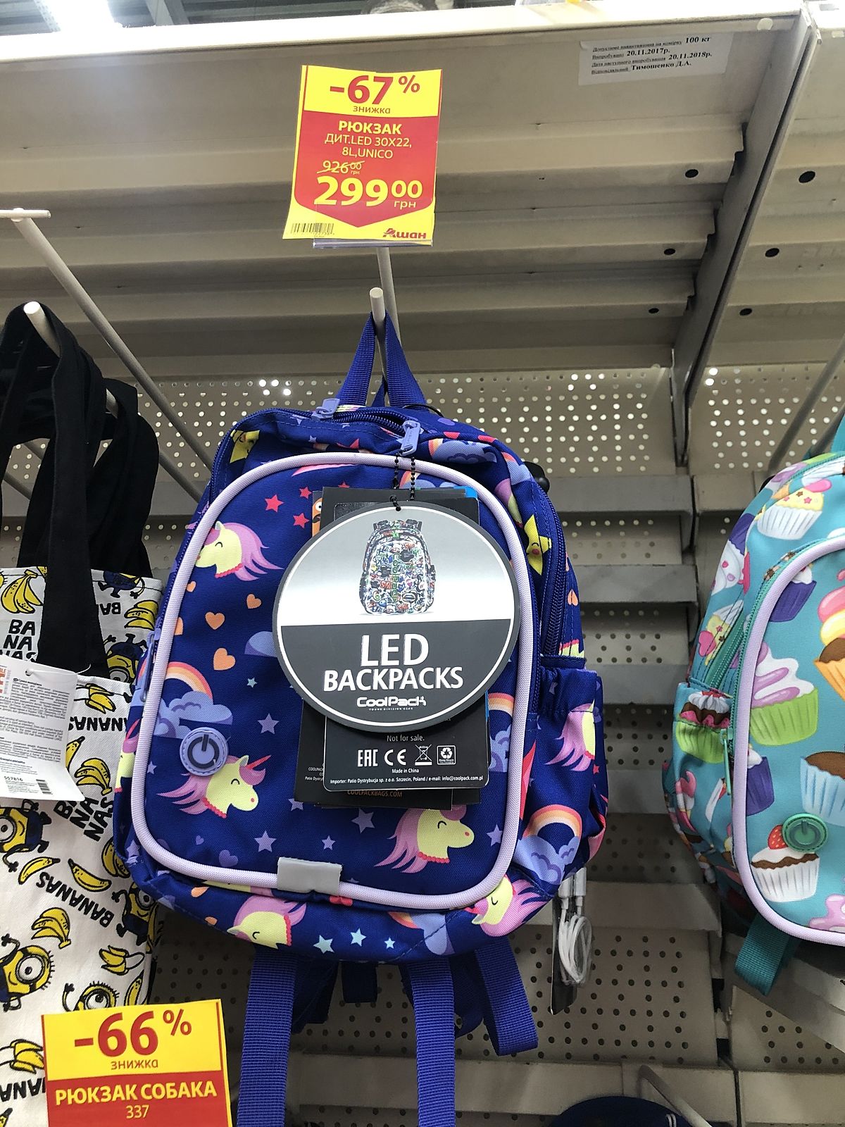 Хорший рюкзак, але були тільки для дівчаток з єдинорогами та капкейками.