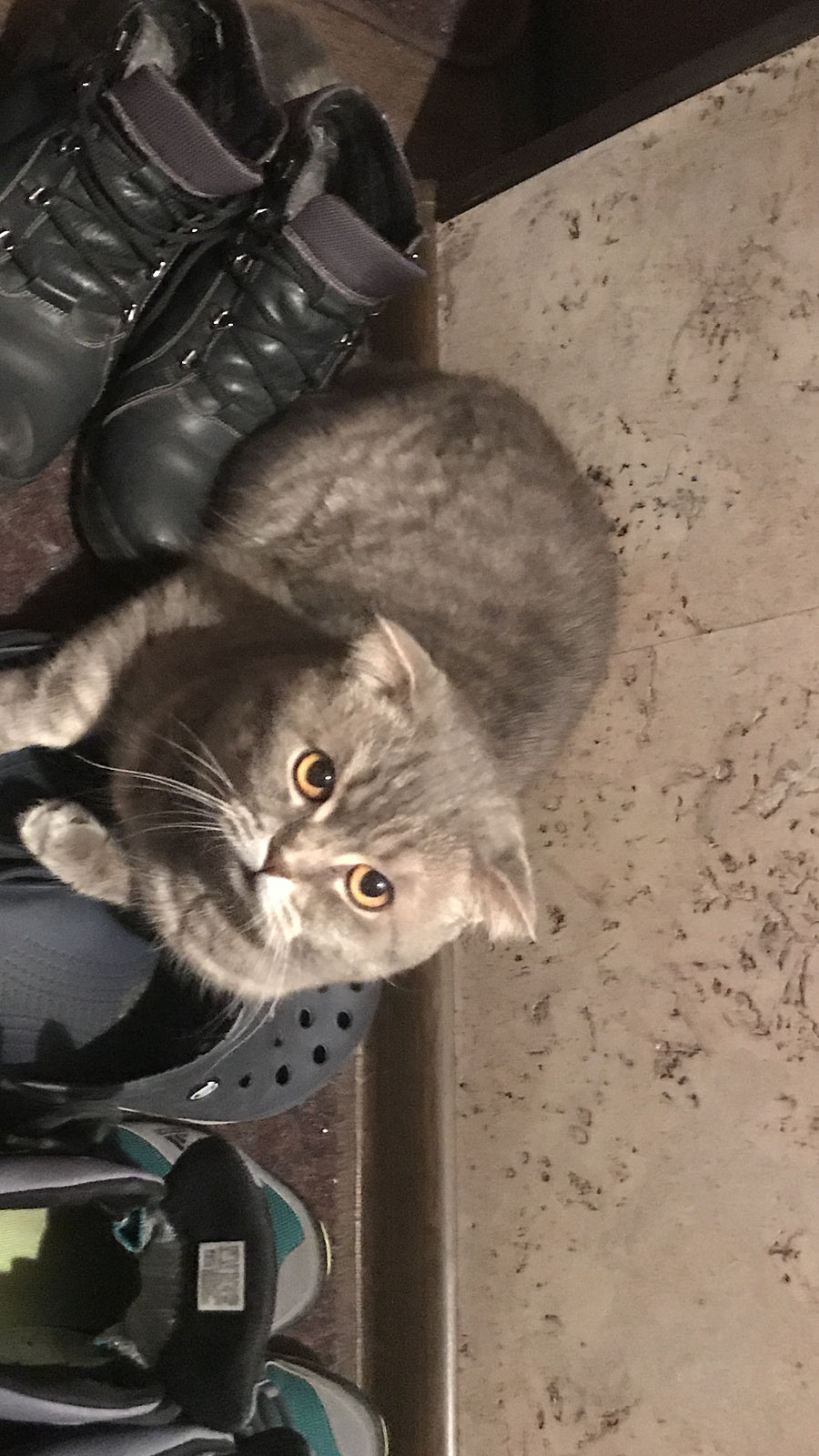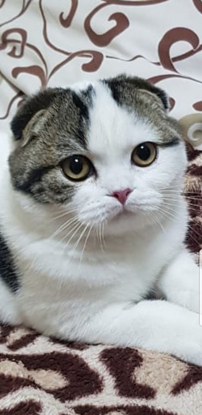 Шотландська вісловуха, 1,3 , прививки зроблені, бліх немає, нестерилізована ( діти хотіли маленьких кошенят ) .Мама і тато чисті шотландці. Їсть тільки корм ( сухий, мягкий), Purina proplan, інших нижчих за якістю не пробували.