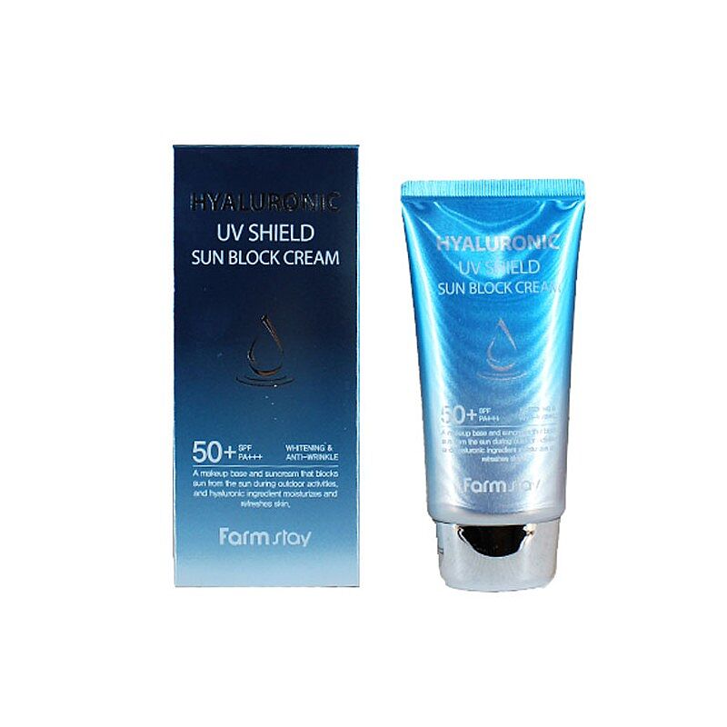 Легкая солнцезащитная крем-эссенция с гиалуроновой кислотой FarmStay Hyaluronic UV Shield Sun Block Cream SPF50+ PA+++ станет надежным помощником в ежедневной защите кожи от вредного воздействия ультрафиолета. Средство имеет легкую, комфортную текстуру, быстро впитывается и выравнивает кожу.
