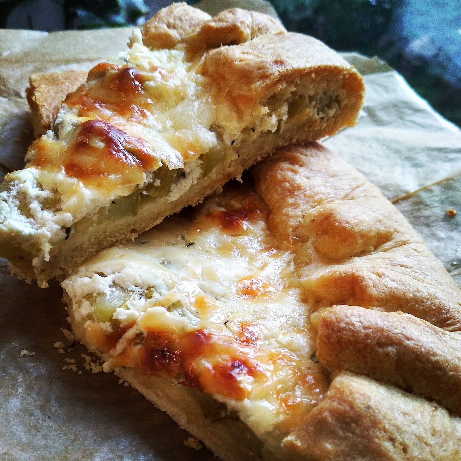 Еще галета с кабачками! Гплетное тесто+обжареные или запеченые кабачки и сметана с чесноком,соль/перец и тертый сыр.