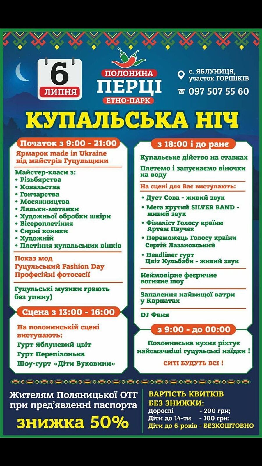 Кто отдыхает в Буковель,с. Микуличин, в селе Яблуница на полоныне Перцев 06.07 праздник Ивана Купала. Нахожусь там, ярко, красиво, колоритно. Советую побывать!