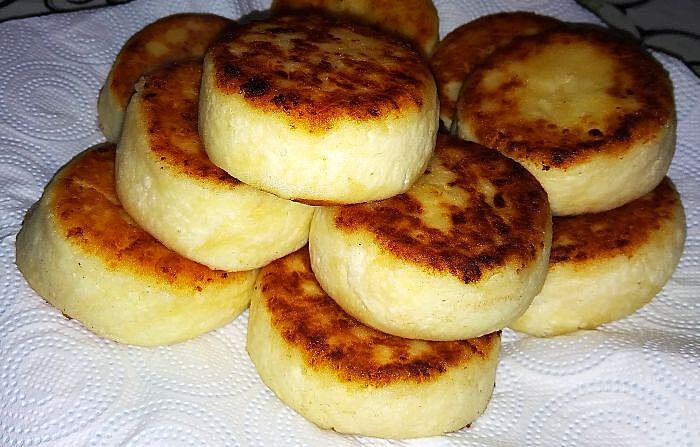 Вот сделал человек доброе дело поделился от души своим опытом и рецептом и обокрали по полной, от души, слова разобрали, рецепт подправили, форму сырников обгадали. Эх, советчица...