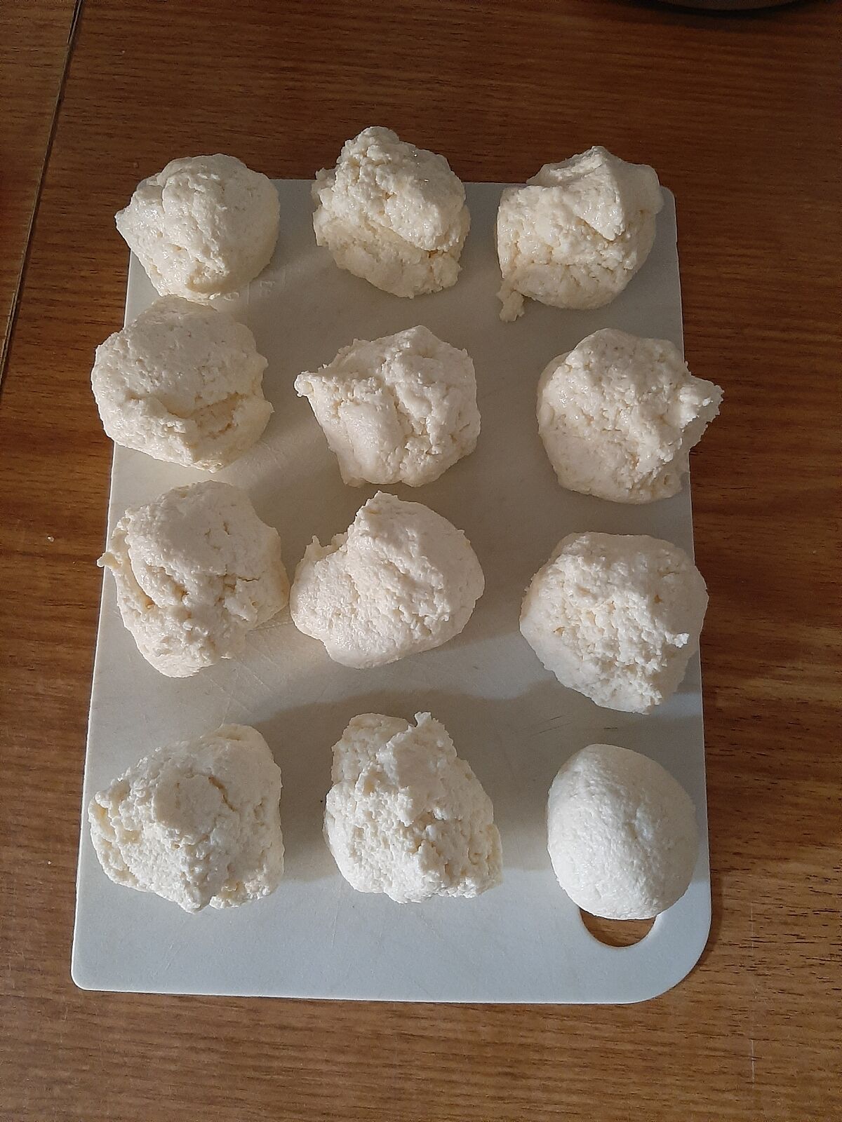 5. Щоб зробити гарну однакову форму. Я роблю кульки, наче великі фрикадельки трохи їх розплющую. Розміщую на гарній відстані, щоб як збільшаться в розмірі вони не торкалися один одного.