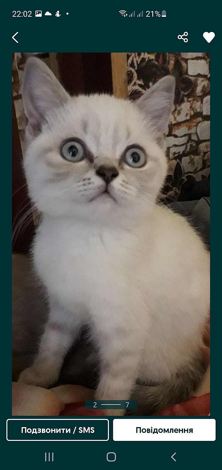 Доброго дня. Хочемо на ДН дитині подарувати кошеня, білого кольору, короткошерстне. На олх в нашому місті поки відповідає критеріям лише ця киця, господарі запевняють нас, що це скотіш страйт чистокровний. А от чоловік сумнівається. Можливо підкажете, чи котик на фото є представником породи скотіш страйт.
