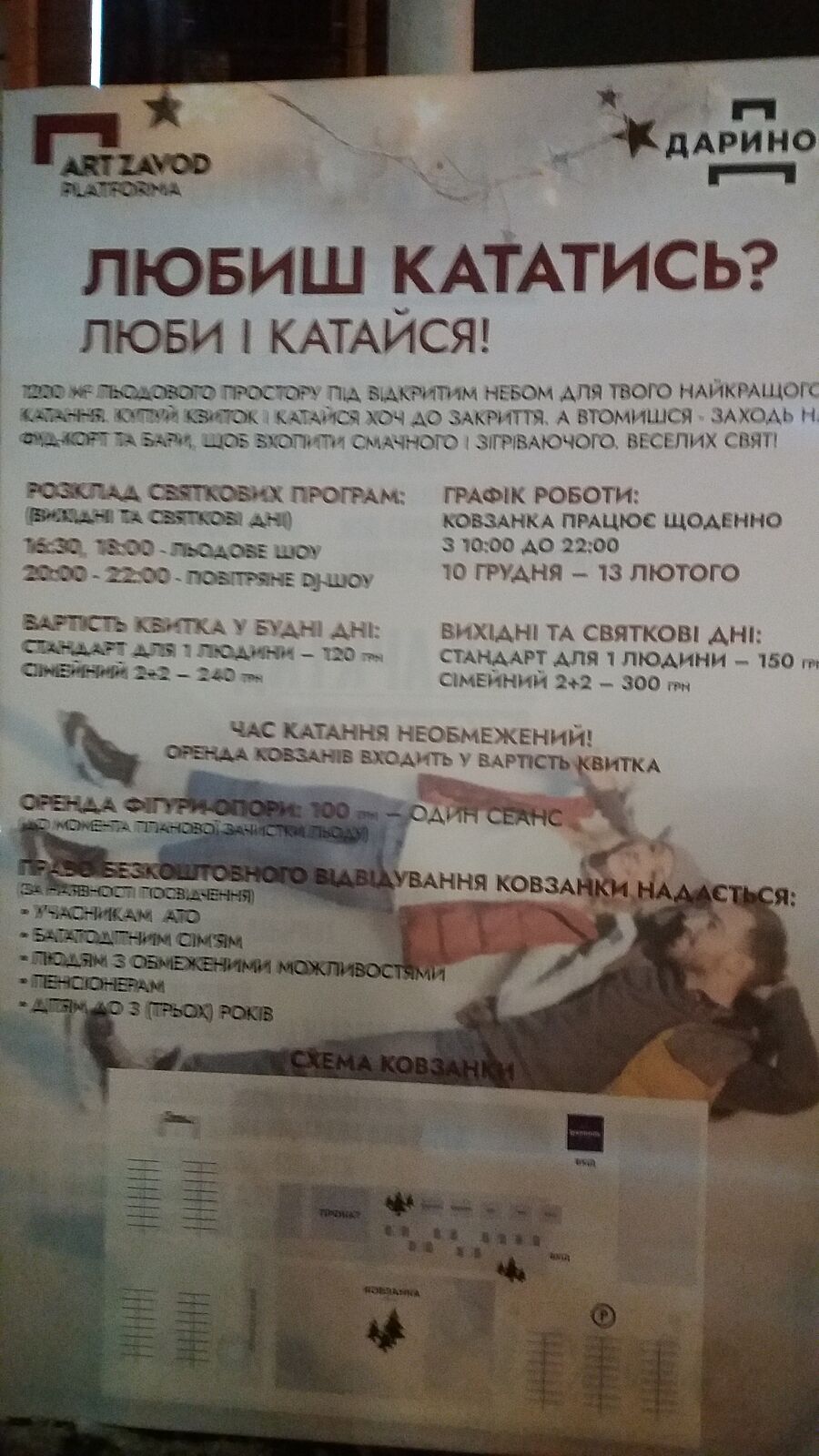 На Дарынке в выходной день 300 грн на четверых, вход безлим и коньки. И ледовые шоу. Очереди умеренные, намного меньше чем на рошене.