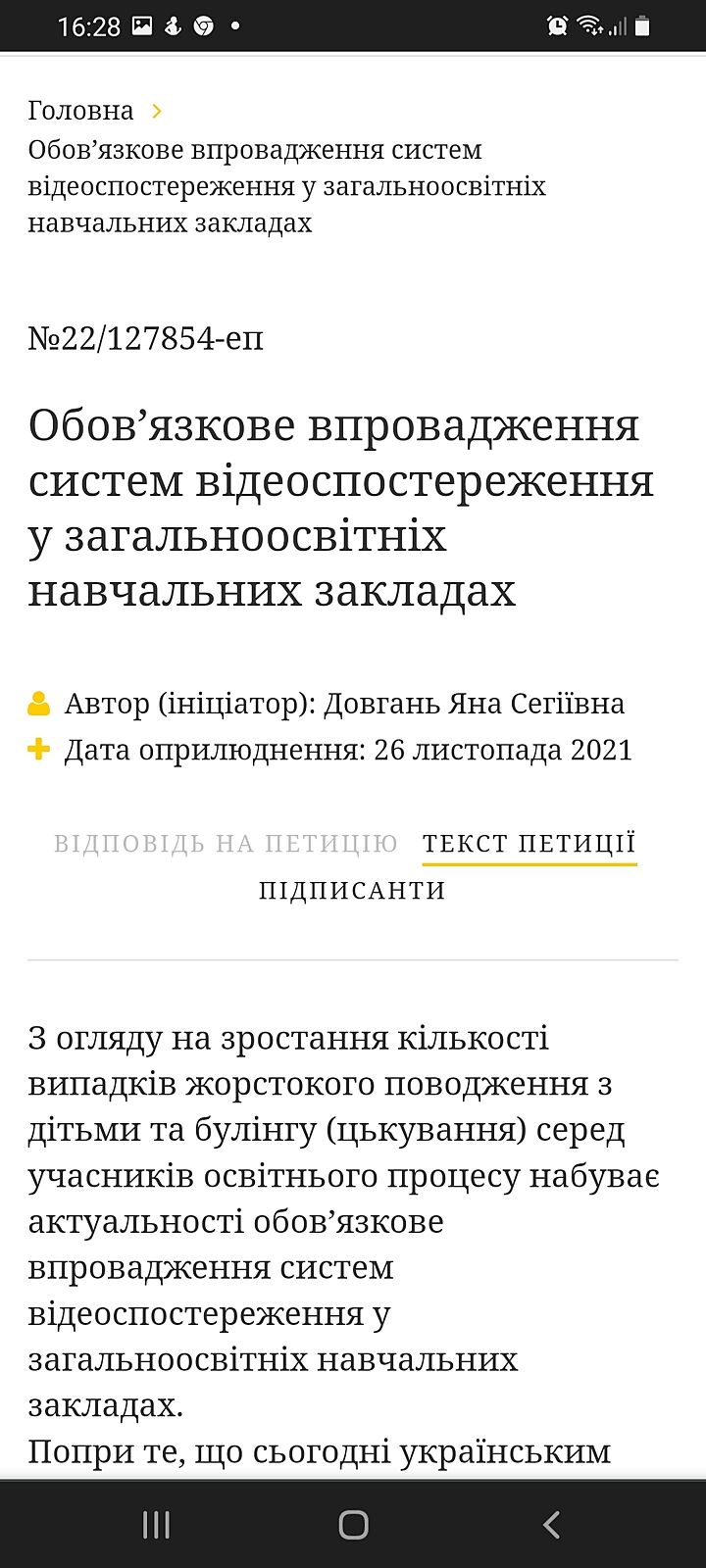 Прошу подписать электронную петицию президенту о внедрении систем видеонаблюдения в школах