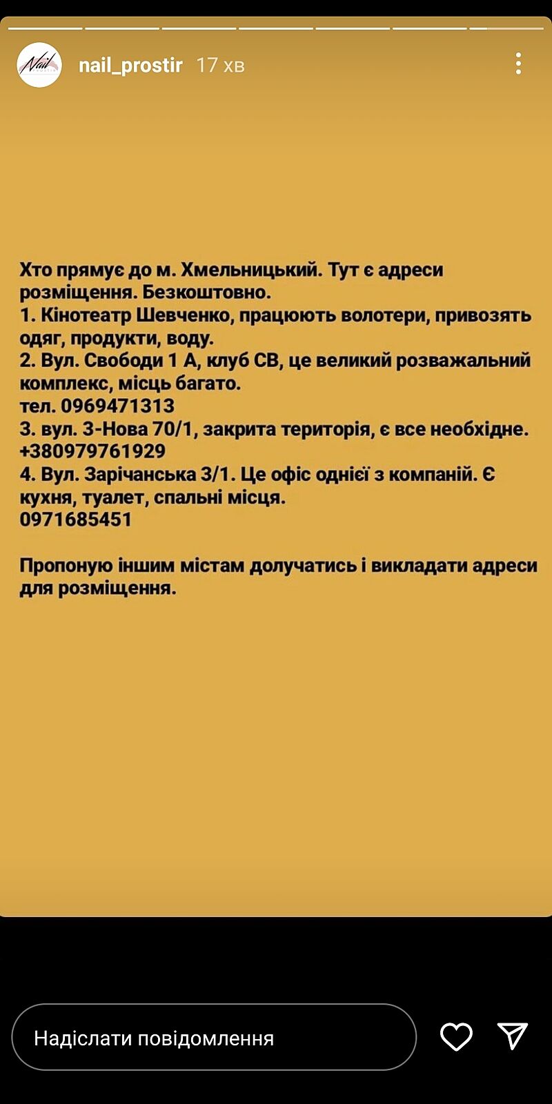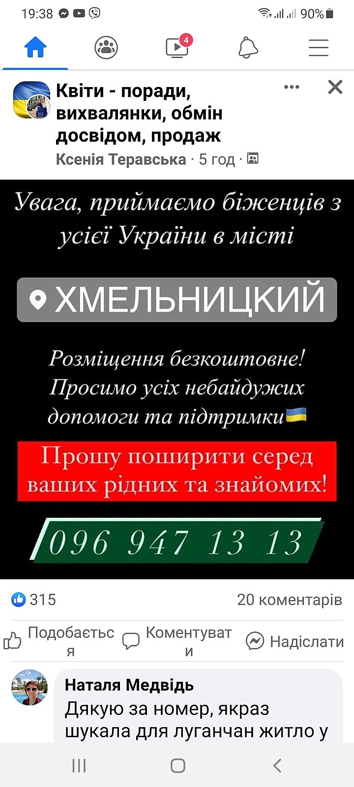 Спасибо большое. Не поверите, на сайте прыхысток был неправильный номер телефона. И девочка, чей номер был указан, не поленились сделать подборку контактов, где расселяют беженцев, и всем звонившим сбрасывает его на Вайбер.