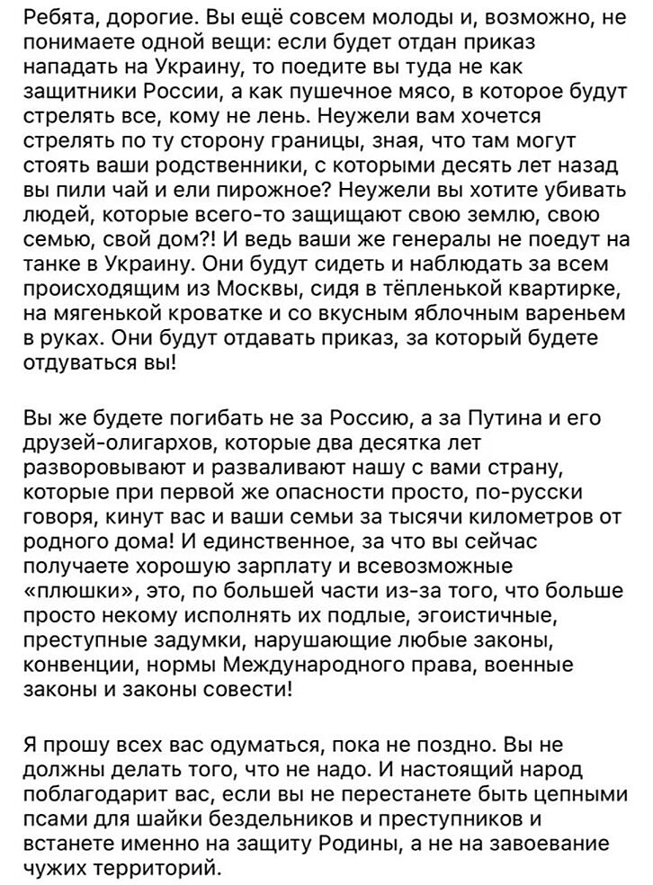 Зато нашла ее обращение 20-тичасовой давности к российским солдатам. Хочется ее обнять