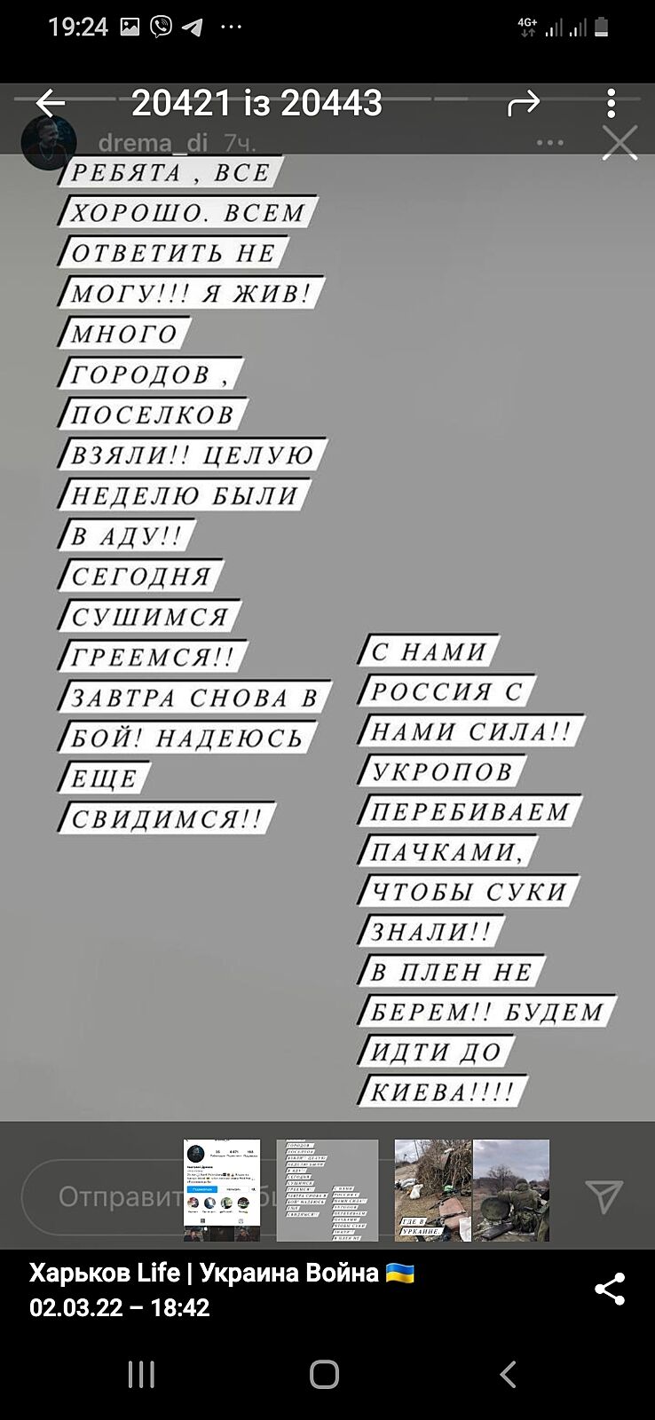 Инстаграм,окупант из россии,в своих сториз публикует " великую армию",заходите пишите комменты под фото