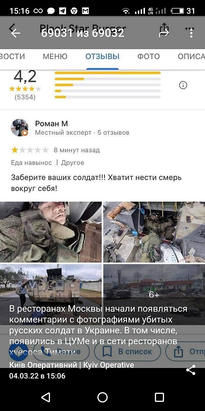 Зашла в отзывы этого black star burger, а там только о еде. Отзывы о войне в Украине и потерях они удаляют?