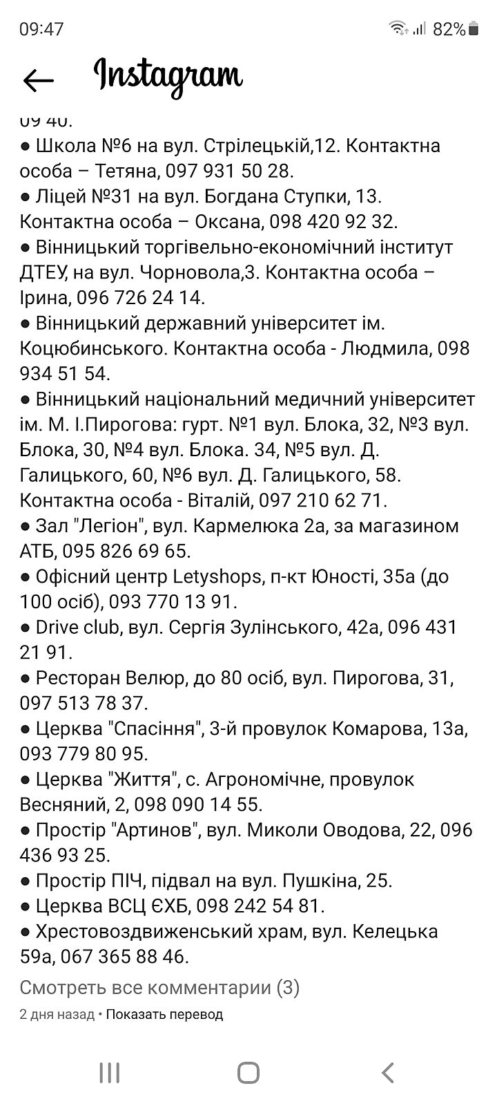 🔹 Вінницький політехнічний університет (гуртожитки: вул. Келецька, 98, вул. Келецька, 100). Контактна особа – Віктор, моб. тел. 0674302943