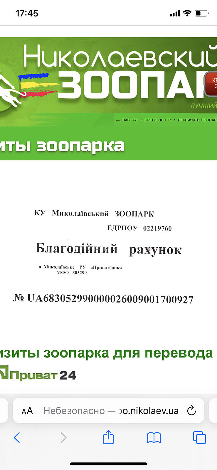 У директора николаевского зоо огромное сердце и самоотдача такая что аж. Все, кто решит помочь- знайте, каждая ваша копейка пойдёт по назначению, он ещё из своих доложит (отказывался от личных премий в пользу зоо).