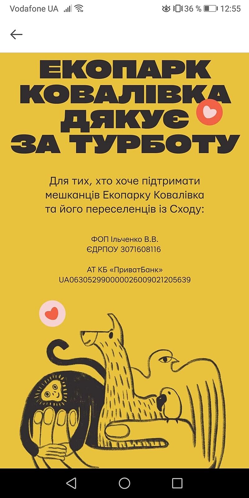 Прочла сегодня тему здесь, писали о зоопарке в Николаеве. Девочки сразу же откликнулись, в качестве финансовой поддержки покупали билеты онлайн. Так меня эта тема «зацепила». Рассказала своей дочери, у неё 170 тысяч подписчиков в Инстаграм. И вот после ее поста целый день ей приходят сообщения от людей, которые перечисляют деньги зоопарку… сижу и плачу от радости, какие же у нас все таки люди отзывчивые. Вмести мы сила! P.S: завтра, думаю, поможем зоопарку 12 месяцев, им тоже сейчас очень тяжело.